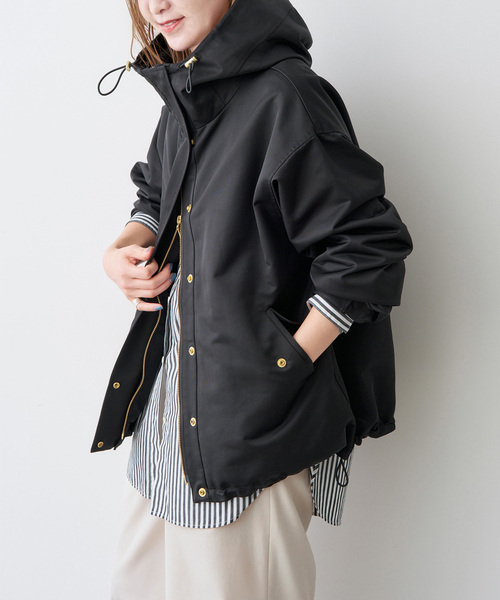 新色ブラウンが仲間入り。撥水仕様で上品に着られるマウンテンパーカーが追加決定!シンプルで洗練されたデザインが、大人の日常に寄り添うマウンテンパーカー。軽やかな着心地ときれいめな表情をあわせ持ち、デイリーからきちんと感のあるスタイルまで幅広く対応します。微光沢のあるコットンポリエステル素材を使用し、カジュアルになりすぎず、さりげなく大人っぽい印象に。柔らかなハリ感が立体的なシルエットを自然に生み出します。ゴールドのファスナーやストッパーが控えめな華やかさを添え、フードや裾のコードでフォルムの調整も可能。袖口はベルトと2つのボタンでサイズ感を変えられ、気温やインナーに合わせた着こなしが楽しめます。撥水加工と裏地付きで、小雨の日や気温の揺らぎにも対応。きれいめにもカジュアルにもなじみ、ワードローブに一枚あると心強い、頼れるショートアウターです。※こちらの商品は 24011200400030、25011200417010、25011200417030 追加商品です。※ブラックはリピート。ブラウンは新色です。※追加生産商品は、一部の店舗や通販で販売されている場合がございます。あらかじめご了承ください。※同一商品でも個体差により、採寸サイズに若干の差が生じる場合がございます。※レビュー内容には、品番の異なる同商品のレビューが含まれている場合があり、現在展開していないカラーやサイズの内容が含まれることがございます。※取り扱いについては、商品についている品質表示でご確認ください。※こちらの商品は、Spick & Spanでの取り扱いになります。 直接店舗へお問い合わせの際は Spick & Span店舗へお願い致します。※照明の関係により、実際よりも色味が違って見える場合があります。またパソコン・スマートフォンなどの環境により、若干製品と画像のカラーが異なる場合もございます。※商品の色味は、商品アップ画像をご参照ください。ブラック着用スタッフ:160cm 着用サイズ:38ブラウン着用スタッフ:158cm 着用サイズ:36ブラック詳細着用スタッフ:162cm 着用サイズ:38ブラウン詳細着用スタッフ:163cm 着用サイズ:36本体:洗濯機洗い(弱)
