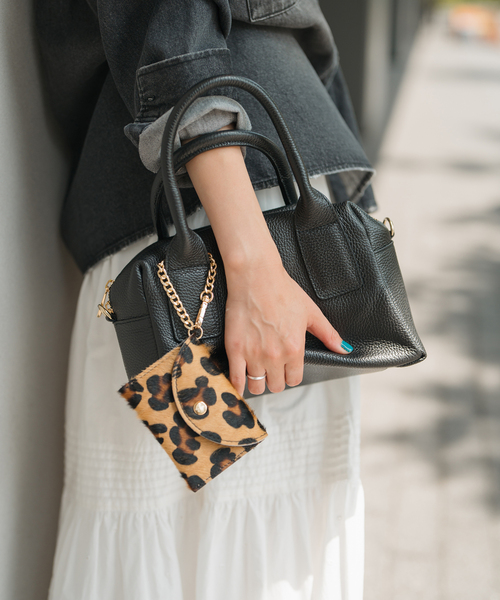 ※メーカー型番:3625T※カラーについて弊社販売カラー名:メーカーカラー名ブラック(001):NERO大人気!MILOS別注ミニボストンが待望の再々追加決定!・こちらの商品は25092210003730、25092210008230、26092210009410の追加商品です。・追加生産商品は、一部の店舗、通販で販売中の場合がございます。予めご了承下さい。・同一商品でも個体差が生じるため、採寸内容に若干の差が生じる場合がございます。・レビュー内容は、品番の異なる同商品のレビューが含まれており現在、展開外のカラー・サイズが含まれている場合がございます。MILOSより別注ミニボストンが登場。傷や汚れがつきにくいシボ革を使用した使い勝手抜群のバッグです。Spick & Span別注でレオパード柄のカードケースをつけ、程よくコーディネートのアクセントに。カードケースは仕切りが2つあり、機能性も◎取り外し可能なショルダーストラップをつけており、斜め掛けもできるのでお仕事からお出かけまで幅広いシーンで活躍すること間違いなし。マチが12cmとたっぷりあるので、見た目以上にお荷物を収納できるのもうれしいポイント。付属カードケース内側に3つポケットあり【MILOS / ミロス】イタリア・フィレンツェ発の、モードなデザインと上質な革使いが魅力のバッグブランド。軽くて肌ざわりの良いボラナート革を使用。通常の革よりオイルを多く含んだボラナート革は、牛革が本来持つシワ感などの風合いを活かした柔かい素材の為、使い心地よく仕上がっています。レザーの上品な質感、ステッチ、デザインは、イタリア職人の熟練された丁寧な技が伝わってきます。※取り扱いについては、商品についている品質表示でご確認ください。※こちらの商品は、Spick & Spanでの取り扱いになります。 直接店舗へお問い合わせの際は Spick & Span店舗へお願いいたします。※照明の関係により、実際よりも色味が違って見える場合があります。またパソコン・スマートフォンなどの環境により、若干製品と画像のカラーが異なる場合もございます。※商品の色味は、商品アップ画像をご参照ください。