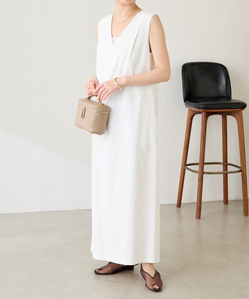 涼し気なシェルタリング素材がシーズンムードを高めてくれるワンピース 【POINT】 ・Vネックが顔周りをすっきり見せてくれるIラインのノースリワンピース。 ・腰回りに程よくゆとりを持たせているので下半身のラインを拾いにくく、体型カバーが叶います◎ ・どんなシーンにも取り入れやすいデザインですが、肩にタックを取ってシンプルになりすぎないようこだわりました。 ・背中部分のファスナーには、スライダーを付けることでワンポイントになるようにしています。 ・吸水速乾/接触冷感/紫外線防止/防透けを備えた素材を使用しているので、機能性にも優れたワンピースです。 【おすすめコーディネート】 同素材の【シェルタリングジレ CLZ1061307A0001】とセットアップで合わせてお食事や観劇シーンにもおすすめです。 デニムジャケットやシャツをさらっと羽織ってカジュアルにも活躍します◎ 【おすすめのスタイリングアイテム】 ・メッシュダブルジャケット CLZ1061307A0002 ・ヴィンテージライクシアーシャツ CLZ1061304A0006 【シェルタリング素材シリーズ】 ・シェルタリングIラインワンピース CLZ1061309A0001 ・シェルタリングジレ CLZ1061307A0001 ・シェルタリング3タックパンツ CLZ1061302A0001 ・シェルタリングタックスカート CLZ1061301A0001 【素材】 表地: ポリエステル81%, 綿14%, 麻5% 見返し: ポリエステル100% 透け感:ホワイトややあり 裏地:なし 伸縮性:あり 光沢感:なし おすすめ着用時期:春、夏、秋 洗濯:洗濯機可(弱) ≪返品・交換・修理について≫ ・着用後、洗濯後の返品・交換は致しかねます。 ・商品到着後、着用前に商品状態のご確認をお願い致します。 ・ECサイトでご購入いただいた商品は、お修理を承っておりません。 【気になる商品は「お気に入り」登録を】 ハートマークをクリックし、お好きなカラーを選んでお気に入りに登録すると 入荷情報や残り1点の通知、完売カラーの再入荷、セール情報などを受け取ることができます。 ※撮影場所やお使いのモニター環境により若干お色味が異なる場合がございます。 特にロケの撮影では明るく見える傾向にございます。詳細撮影画像で色味をお確かめくださいます様お願いいたします。 ※サンプルで撮影をしております。若干の仕様が変更になる場合がございますので予めご了承の上ご注文くださいますようお願いいたします。 ※サンプルでの採寸のためあくまで目安となります。予めご了承ください。