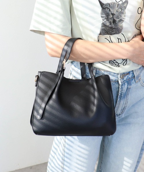 ショルダーバッグのついたフェイクレザーのスクエア型トートバッグ細めのハンドルとバックルがアクセントになったデザインでシンプルながら大人っぽさを演出。インナーポーチは取り外してショルダーストラップを付ければ、単独でショルダーバッグとしても使える2way仕様です。長財布や500mlボトルもすっきり収まる収納力で、デイリーから通勤まで幅広く活躍します。おしゃれと機能性を両立させたこのバッグはシーンに合わせて持ち方を変えられるため、デイリー使いはもちろん、お出かけや旅行にもおすすめ。毎日のコーデに取り入れやすい万能デザインです。▼商品詳細▼【ポケット】外:0 内:2【口元開閉方法】マグネット・A4対応(22×31cm):×・長財布(10×20cm):〇・ペットボトル横向き(500ml):〇・ペットボトル縦向き(500ml):×【cache cache / カシュカシュ】ガーリッシュテイストをベースに、ちょっと背伸びしたような 大人っぽさをMIXしたアイテムを展開するcache cache(カシュカシュ)。フランス語で「かくれんぼ」を意味するブランド名に相応しく、 可愛らしさと遊びゴコロを大切にしています。カラフルで素朴なハンドクラフトやキュートなモチーフ使いなど、 心躍るようなバッグを多数展開しています。