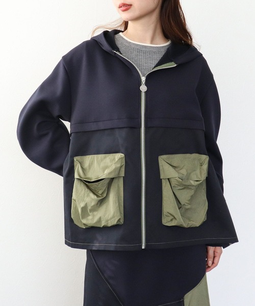 MARECHAL TERRE / ポケットフーディー異素材のドッキングが目を引くデザインのフーディーです。 リラックスして着られるシルエットで肩の力を抜いてオシャレして頂けます。 春秋は羽織としても活躍するのでロングシーズン着られるのも嬉しいポイント。 大き目のポケットも抜け感たっぷり♪ -------------------------------------- 透け感:なし 裏地:なし 伸縮性:ややあり ケア方法:手洗い可 ※お洗濯の際は洗濯表示を必ずご確認ください。 -------------------------------------- <コーディネートmodel160cm> <詳細画像model162cm> [MARECHAL TERRE / マルシャルテル] 着る人を「凛」とさせる服作りをコンセプトに「Traditionalを遊ぶ」、トラッド・カジュアル・エレガント・モードを少しだけ捻ったデザインで30代のリアルクローズを提案。 着る人が心を動かされる物作り、シンプルで心地よく女性に共感を得ることを服作りのVISIONに。