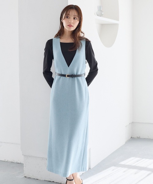 品良くトレンド、大人のための2WAYジャンパースカート。今年らしいクラシカルな雰囲気と、レイヤードスタイルを楽しめる一枚。取り外し可能なベルトがアクセントになり、自然なスタイルアップ効果を発揮。体型を拾わないIラインシルエットで、ベルトが無くてもすっきりとしたシルエットをキープします。深めのVネックデザインが首まわりをすっきりと魅せ、コンパクトニットやブラウスなどのシンプルなインナーと合わせるだけで、洗練されたレイヤードスタイルが完成。バックスリット入りで足さばきもしやすく、着心地も兼備。※屋内外の光や照明の当たり具合で、実際の商品の色味とカラー別画像の色味に違いが発生する場合がございます。色味はスタジオ撮影の詳細画像にてご確認ください。※生地の寄り画像が最も実物に近い色味となります。ーーーーーーーーーーーーーーーーーーーーーーー▼ 商品のお気に入り登録 ▼完売カラーの再入荷通知や、ラスト1点の通知、クーポン開始、セールの通知も受け取ることができます。▼ ブランドのお気に入り登録 ▼新商品や再入荷など、ブランドのお得な情報をいち早くお知らせ!ぜひご登録ください!