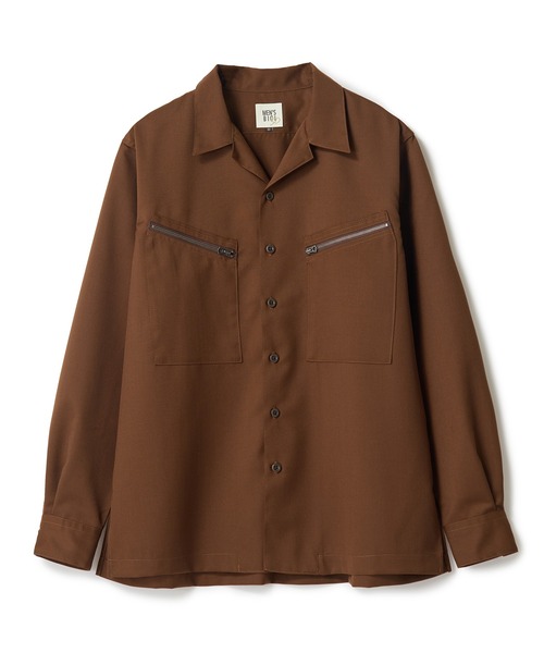 【ワークの意匠を、端正に羽織る。】ワークウェアのつなぎから着想を得たディテールを、上質素材でクリーンに昇華。軽やかに羽織れて、単品でもセットアップでも絵になる大人のシャツアウターです。【デザイン/素材】ワークシャツをベースにデザインした、軽快に羽織れるシャツアウター。素材には、ウール×ポリエステルの梳毛素材「SMART MERINO」ツイルを採用し、ワーク由来のデザインに上品な表情をプラスしています。ワークシャツの武骨さを残しながらも、ウールの上品さとさらりとした肌触りのきれいな表面感が加わることで、クリーンで洗練された印象に仕上がっています。【シルエット】全体はゆったりとしたリラックスフィット。オープンカラー仕様により、程よい抜け感が生まれ、大人らしい余裕を感じさせるシルエットです。軽さのある仕立てで、季節の変わり目にも心地よく着用できます。【ディテール】最大の特徴は、両胸に配したワークウェアのつなぎから着想を得たファスナーポケット。機能性とデザイン性を兼ね備えたアクセントとして、シンプルな装いに程よいインパクトを与えてくれます。同素材のパンツと合わせたセットアップスタイルもおすすめで、統一感のあるモダンなワークスタイルが完成します。同色同素材パンツ:M0162FP121モデル:身長:185cm バスト:90cm ウエスト:77cm ヒップ:92cm 着用サイズ:03(L)※照明・光の加減、PCやスマートフォンなどの環境により、製品と画像のカラーの見え方が異なる場合がございます。※画像はサンプルのため、色味やサイズ等の仕様が変更になる場合がございます。※サイズは弊社規定の採寸によって記載しておりますが、若干の個体差が生じる場合がございます。