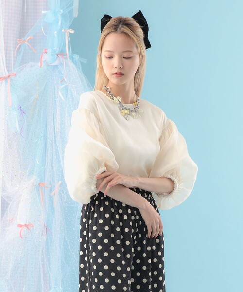 ふんわり袖と光沢感彩る華やぎトップス■デザイン上品な光沢感が目を引く、異素材のレイヤードプルオーバー。スッキリしたネックラインに、ふんわりとしたボリュームスリーブは肘が隠れるデザイン。バックスタイルのファスナー部分には、敢えて長めにしたベロアリボンをあしらい、かわいいだけでなく着脱がしやすいようにも配慮しました。オーガンジー素材と、裏側には伸縮性のあるカットソー素材を使用し、透け感を気にせず着用していただけます。■コーディネートデイリーからきれいめスタイルまで幅広く活躍。パンツにもスカートにも合わせやすく、スタイリングの主役になる1枚です。■サイズドロップショルダーで程よいゆとりを持たせ、綺麗なラインを意識したサイズ感。■素材光沢感のあるオーガンジー素材に、肌あたりがやさしく伸縮性のあるカットソー素材を使用し透け感はなし。IVORY Model : H163 B77 W60 H83 Size : ONE SIZEGRAY Model : H163 B77 W60 H83 Size : ONE SIZEGREY Model : H161.5 B76 W64 H88 Size : ONE SIZE生地の厚さ:普通透け感:一部あり伸縮性:一部あり光沢感:一部あり裏地:あり※画像の商品はサンプルのため、実際の商品と「仕様」「色味」が異なる場合がございます。CAROLINA GLASER / カロリナ グレイサーシンガーでありデザイナー、同世代の女性より多くの支持を集めるインフルエンサーでもあるMEGが手掛けるブランド。2014年12月より、BEAMSがプロデュースをスタート。スタンダードなアイテムにトレンドを取り入れて、今の気分をすぐ身につけられるウェアをオンラインショップで提案。