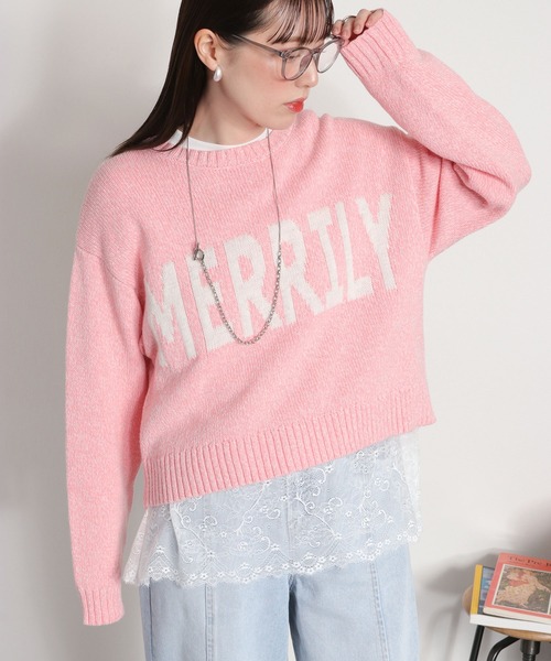 春の陽気を纏う、霜降りジャガードニット。 異なるカラー糸で作られた霜降り模様が、こなれ感たっぷりの1着。 フロントの「MERRILY」ロゴが、春のコーデに明るいアクセントをプラスします。 ◇Point◇ 2色の糸を使ったジャガード編みで、着古したような独特の風合い。 柔らかくモチモチとした肌触りで、着心地抜群。 ややオーバーサイズ&ショート丈で、パンツ・スカート・ワンピースとも相性◎ 緩めのネックデザインが、女性らしいデコルテラインを綺麗に見せます。 ◇Material◇ コットン×アクリルの程よい厚みの生地で、秋〜春まで長く着回せる万能ニット。 手洗い可能でお手入れも簡単です。 ◇Coordinate◇ シンプルなデザインなので、どんなボトムとも合わせやすい。 ワンピースの上に羽織って大人可愛いスタイルも◎ Tシャツやタートルネックとのレイヤードで、春先のコーデもおしゃれに決まる ※照明や天候により実際の色味と異なって見える場合がございます。ご了承くださいませ。 【キーワード】 #Y2K#10代#20代#30代#40代#50代#春コーデ#大人カジュアル#フェミニン#クロップドニット