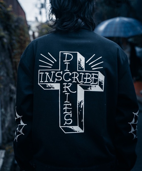 DICKIESとINSCRIBE TATTOOコラボモデルDICKIESの定番アイゼンハワージャケットをベースにしたモデル。十字架の立体構造に「INSCRIBE DICKIES」の文字を刻み込み、“揺るがぬ信念”を表現したクロスロゴ。タトゥーアーティストならではの線の力強さと影の奥行きを活かし、不揃いな線やかすれをあえて残すことで、ストリートに根ざしたリアルな質感を生み出しました。「INSCRIBE=刻み込む」という言葉に、ワークウェアとタトゥーが持つ“生き方に寄り添う存在”という共通の想いを重ねています。迷いなく、自分の芯を貫くための一着です。【INSCRIBE TATTOO/インスクライブ タトゥー】INSCRIBE TATTOO は、上野から始まり 20年以上の歴史を持つ老舗タトゥースタジオです。 現在は都内に5店舗を展開し、国内外から多くのお客様にご来店いただいています。 在籍する彫師は総勢17名。それぞれが豊富な経験と高い技術を持ち、和彫、リアリスティック、カラーワーク、繊細なラインワークまで幅広いスタイルに対応可能です。 「安心・安全・高クオリティ」をモットーに、これまで数多くの作品を手がけてきました。確かな経験と技術で、お客様一人ひとりのイメージを形にしていきます。 INSCRIBE TATTOO では、ストリート・アート・音楽など多様なカルチャーと共に進化しながら、「自分らしさ」を刻める、そして、幅広い世代のお客様に支持されています。・・・・・・・・・・・・・・・・・・・・・・~お気に入り登録のオススメ~☆商品のお気に入り登録再入荷、残り1点、セールなどの情報通知を受け取ることができます。☆ブランドのお気に入り登録新商品や再入荷、ショップのおすすめトピックスなど、最新情報を受け取ることができます。・・・・・・・・・・・・・・・・・・・・・・※掲載画像に関しましては、屋外や屋内での光の当たり方やパソコンやスマートフォンなどの閲覧環境によって実際の色味と異なる場合がございます。予めご了承ください。※サイト内でのカラー名と、お届け商品に記載されているカラー名が異なる場合がございます。※着用・お取り扱いの際は、商品についている品質表示とアテンションタグを必ずご確認ください。