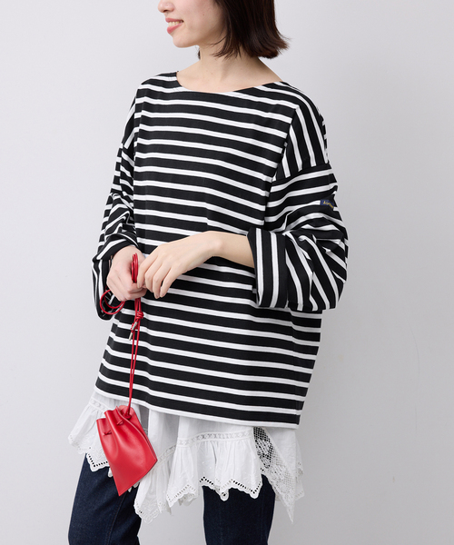※カラーについて弊社販売カラー名:メーカーカラー名ブラック(001):NOIRネイビー(040):MARINEピンク(063):ROSE PINK ※サイズについて弊社販売サイズ:メーカーサイズフリー(009):F【2026SS】SLOBE IENAルミノアの定番ボーダーを、今の気分に合わせてビッグシルエットに別注しました!素材には、繊細な40番手のCotton Pegne(コットンぺニエ)を使用。しなやかで肌あたりがよく、厚地すぎないのに透けにくいのが魅力です。繰り返し着用してもヨレや型崩れが起こりにくく、長く愛用いただける素材感に仕上がっています。※こちらの商品は、SLOBE IENAでの取り扱いになります。直接店舗へお問い合わせの際はSLOBE IENA店舗へお願い致します。※照明の関係により、実際よりも色味が違って見える場合があります。またパソコン・スマートフォンなどの環境により、若干製品と画像のカラーが異なる場合もございます。予めご了承ください。※商品の色味は、商品アップ画像をご参照ください。本体:洗濯機洗い(弱)