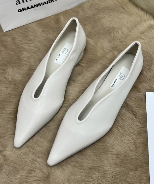 Vカットで足元すっきり 上品さが際立つフラットパンプス V字のカッティングとポインテッドトゥが 足元をシャープに演出するフラットパンプス。 甲をすっきり見せるVカットデザインで、 フラットながら足長効果も期待できます。 上品さを保ちつつ、気負わず履けるバランスが 大人のデイリーに最適な一足です。 きれいめパンツやタイトスカートと 合わせれば通勤スタイルに、 デニムやワイドパンツと合わせれば 程よくカジュアルダウン。 オンオフ問わず活躍し、足元に洗練された 抜け感をプラスしてくれます。 【26SS】 ▼《お気に入り登録》でお得な情報がいっぱい▼ ・「商品のお気に入り登録」で再入荷通知や、ラストの通知、セール通知も受け取ることができます。 ・「ブランドのお気に入り登録」で新商品や再入荷など、お得な情報を受け取ることができます!
