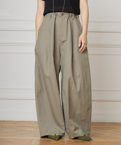 【2026SS】IENA LA BOUCLE大好評につき追加生産が決定しました!※品番25030914198030の追加品番です。※カーキの38サイズは旧品番25030914198030にて販売中です。※若干の仕様変更がある場合もございます。大胆なコクーンシルエットが目を惹くイージーパンツ。上品な微光沢感がありつつ、ソフトな肌触りでややハリがある素材は、ドレープが優雅でカジュアル過ぎない印象に。ミリタリーパンツをベースにモード感と女性らしさをプラス。柔らかな曲線を描くシルエットを作り出すウエストと裾から走るダーツがデザインポイントになっています。ウエストはゴムスピンドルで調整が可能で、ストレスフリーな穿き心地を実現しました。ニュアンスカラーのベージュとカーキが、クラス感のある洗練された雰囲気。シンプルなトップスをドラマティックに仕上げるLA BOUCLEらしいパンツです**********************透け感:なし裏地:なし伸縮性:なし光沢感:なし生地の厚さ:普通**********************※取り扱いについては、商品についている品質表示でご確認ください。※こちらの商品は、IENA LA BOUCLE(NEWoMan新宿店)でのお取扱いとなります。直接店舗へお問い合わせの際は、上記店舗へお願い致します。※照明の関係により、実際よりも色味が違って見える場合があります。またパソコン・スマートフォンなどの環境により、若干製品と画像のカラーが異なる場合もございます。※商品の色味は、商品アップ画像をご参照ください。ベージュA着用スタッフ身長:157cm 着用サイズ:36カーキ着用スタッフ身長:160cm 着用サイズ:38詳細着用スタッフ身長:163cm 着用サイズ:ベージュA36、カーキ38本体:手洗い可能
