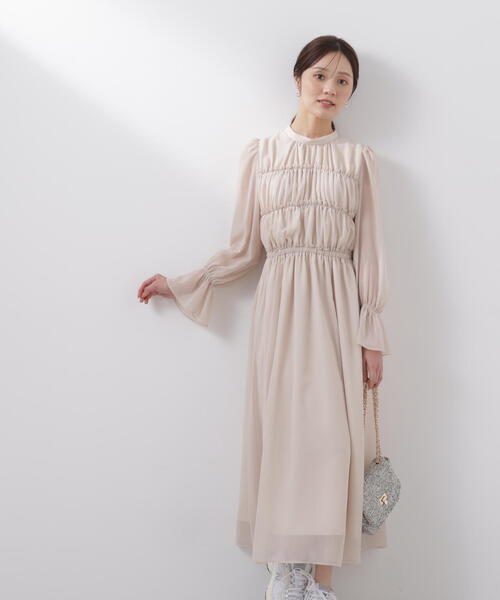 <petit size> 通常のSサイズやMサイズから着丈などの長さを短くリサイズし、 152cm Aroundの小柄さんにもバランスよく着用いただけるサイズに仕上げています。 ZOZO・official site・店舗のみの限定展開です。PS(商品によってはPM/PXSの展開あり)でのサイズ表記になっています。 ほどよいボリュームのシャーリングが大人フェミニンな雰囲気のシアーワンピース。 高めのウエスト切り替えと上半身のシャーリングゴム仕様で、動きやすさとスタイルアップも叶えます。 使いやすい無地ベージュ、華やかな小花柄を揃えたカラー展開で、デイリーからお出かけシーンまで活躍してくれます。 <素材> シフォン楊柳、シフォン生地を使用しています。 <詳細> 仕様・後ろボタン 裏地・あり 透け感・ややあり / 光沢・なし / 伸縮性・なし 生地の厚さ・薄手 ※モデルの着用画像の場合、光の当たり具合により、実際の色味と異なって見えることがございます。 色味は、商品単体の画像をご参照ください。 <商品のお気に入り登録> お気に入りアイテムの値下げ・再入荷・在庫1点などの通知を受け取ることができる 便利機能ですので気に入ったアイテムはお気に入り登録がおすすめ! <ショップのお気に入り登録> 新商品や再入荷、セール、クーポン配布などお得な情報を受け取ることができます。 ●撮影はサンプル商品で行っている為、仕様とサイズが異なる場合がございます。 ●スタジオ及び屋外で撮影した着用画像は、光の当たり具合で色味が違って見える場合があります。予めご了承ください。