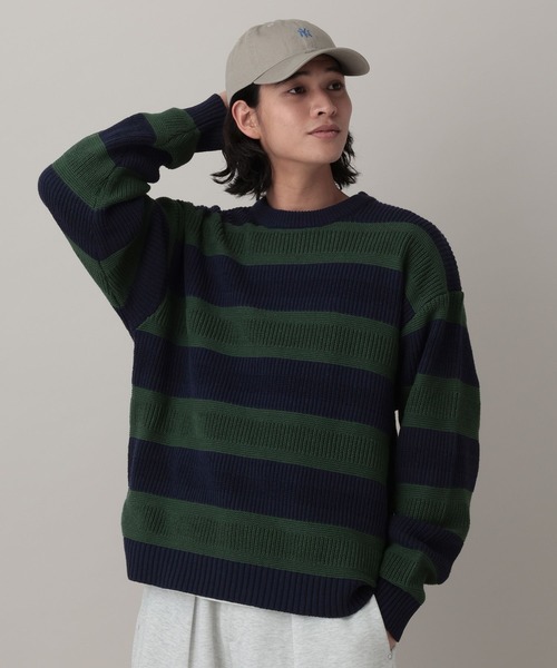 クラシカルな雰囲気を創るボーダーニットーーー■ポイントピッチの異なるボーダーデザインをあしらったクルーネックニット。太めのピッチを採用することで、ラガーTのようなクラシカルな雰囲気に創り上げました。クラシカルでありながら、遊びの効いたデザインが、大人の余裕を感じさせます。ボディーはリラックスシルエット、リブはやや強めのテンションと、メリハリのあるシルエットに仕上げています。■素材7ゲージ編みで丁寧に編み立て、軽量かつ適度な肉感に仕上げています。コットンアクリル素材を使用することで、洗濯機洗いも可能にし、お手入れも簡単です。さらに、肌触りが非常に良く、チクチク感の少ない快適な着心地です======■参考サイズM:~175cmL:175cm~======ーーー