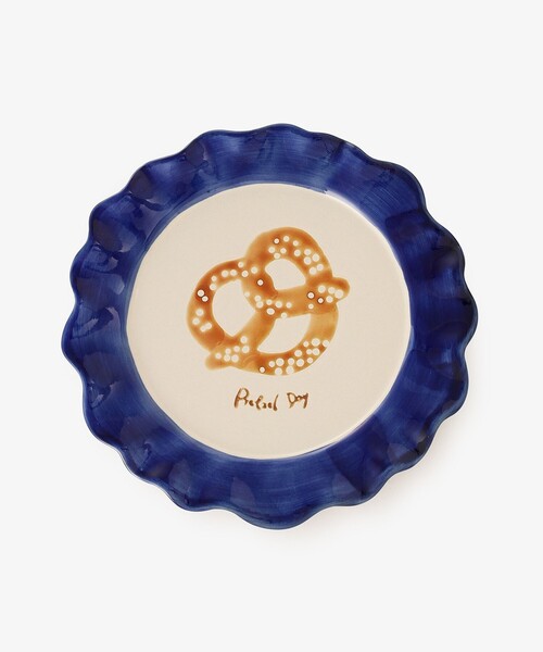 中央にプレッツェルのモチーフが描かれた、Mサイズのプレートです。 朝の時間に小さな幸せを添えるために、朝食にぴったりのデザインを一つひとつ丁寧に手で描いています。ゆるやかに波打つ縁と、プレッツェルのモチーフがアクセントになったデザイン。食卓での使用はもちろん、インテリアとして飾ったり、アクセサリートレーとして使ったりと、幅広いシーンで活躍します。さらに、食器洗浄機や電子レンジに対応しているのもうれしいポイントです。 食器洗浄機〇、電子レンジ〇、直火×、オーブン× 電子レンジは温める程度でしたらご使用いただけます。 長く大切に使いたい器は食器洗浄機のご使用はお控えください。 一点ずつ手作業で模様をつけているため、色の濃さや太さ、風合いには個体差があります。 高さ2.8cm/幅21.3cm/奥行き21cm