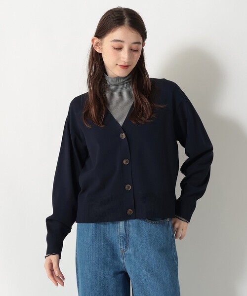デイリーユースにうれしい3つの機能を備えた、「Triple Care Knit(トリプルケアニット)」シリーズのVネックカーディガンです。「洗える、UVカット、毛玉ができにくい」といった特徴があり、快適な着心地で長くお使いいただけるのが魅力。裾や袖などをリブで切り替えて、バランスの良いシルエットに仕上げました。ゆとりを持たせたVネックが、顔回りをすっきりとした印象に。着丈が長すぎないためスカートとパンツどちらにも合わせやすく、着まわしにも便利なアイテムです。 *洗濯の際はネットを使用してください。 *アイロンを掛ける際はあて布を使用してください。