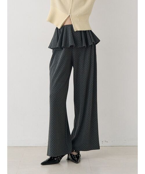 【ポイント】 スカートレイヤードデザインで旬なスタイリングが叶うパンツ。 ウエストはオールゴムで柔らかいカットソー生地で着心地も良く◎ ドット柄やボーダー柄でコーディネートにアクセントをプラスしてくれます。 【スタイリング】 シャツやブラウスなど女性らしいアイテムと合わせるとカジュアルになりすぎないのでおすすめです。 足元にはあえてパンプスを合わせることでトレンド感のあるスタイリングが完成します。 同素材のギャザージップフーディとのセットアップ着用もおすすめ! 【セットアップ対応アイテム】 ・ギャザージップフーディ(082622900201)※パーカーのブラックとパンツのグレーはカラー表記が異なっておりますが、同素材の仕様となっております。セットアップとして着用が可能です。※着用画像はフラッシュの加減で実際の製品と色味等が異なる場合がございますので、生地のズームアップ画像をご確認ください。 ※ご利用の端末画面の設定により実際の商品と色味が異なる場合がございます。 ※正しいサイズはアイテムサイズ表をご確認ください。 ※商品のお取り扱いについては、脇についている洗濯ネーム類をご確認下さい。【jouetie ZOZOTOWN お買い物ガイド】▼商品をお気に入り登録!♡をクリック!完売商品の再入荷やラスト1点の通知、セール開始時にお知らせ!▼"jouetie(ジュエティ)"をお気に入りブランドに登録!新商品や再入荷など、ブランド最新情報をいち早くお知らせ!