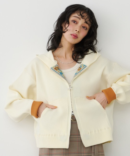 さっと羽織るだけで雰囲気の出るオリジナルのニットパーカー シンプルに見えつつも 折り返したときに覗く袖口の配色デザインや 前端の裏にあしらったチロルテープなど細部まで拘りの詰まった1枚。 程よく張り感のあるニット生地を使用し ふっくらと丸みのあるシルエットを実現。 王道のスウェット生地のパーカーよりもきちんと感があり ラフになりすぎないのもうれしいポイント◎ スタイリングの幅が広がるダブルZIP仕様で お好みでアレンジでき、インナーとのレイヤードもより楽しめるアイテム。 ZIPには馬モチーフのチャームがついていて、さりげないポイントに。 春のコーディネートを盛り上げる発色の良い色展開にも注目 【素材についての注意】 ・ポリエステル100%のニット素材を使用しております。 ・ニット素材の特性上、バッグやアクセサリーなどとの摩擦により、引っかかりや糸の飛び出しが生じる場合がございますのであらかじめご注意ください。 ・乾燥した季節には、静電気が起こりやすくなる場合がございますので、静電気防止スプレーなどのご使用をおすすめいたします。 ■concept■ vintage moodとcontrastをキーワードに 個性的なアイテムと旬なカジュアルアイテムをミックスさせた オリジナリティ溢れるスタイルをご提案いたします。 〈公式Instagram〉 @unitage__official ------------------------ 透け感/なし 光沢感/なし 伸縮性/あり 裏地/なし ------------------------ ※詳細は商品タグをご確認くださいませ。 ※濃色は色移りする可能性がございます。 淡色の小物やインナーとの組み合わせは避けていただくようお願いいたします。 ※商品の写真はサンプル品を撮影しておりますため 実際の商品とは仕様や加工、サイズ等が若干異なる場合もございます。 ※屋外の光や照明の当たり具合で、実際の商品の色味とカラー別画像の色味に若干の違いが発生する場合がございます。 詳細画像と併せてご確認の上、ご注文いただきますようお願い致します。