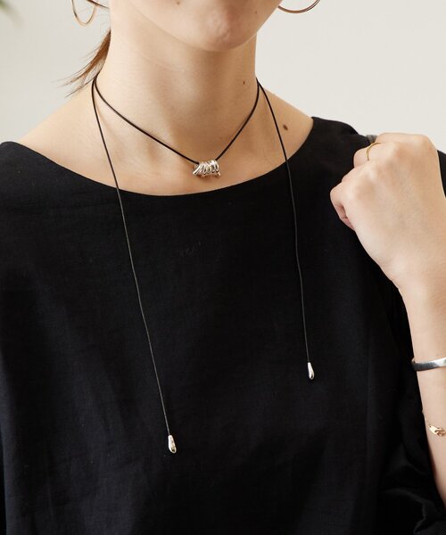 ■アイテムシルバーのコイルモチーフが、アクセントになったネックレス。ブラックのコードがスタイリッシュに見せてくれます。留め具のない仕様で、結び方次第で長さやバランスを自由に調節可能。モチーフは取り外せるので、シンプルなコードチョーカーとしても使えます。その日の気分やコーデに合わせて、アレンジを楽しめるアイテムです。■素材真鍮シルバーメッキ紐:アクリル※着用時は、必ず取扱い表示・タグをご確認の上、お取り扱い下さい。《予約商品について》・サンプルの為、素材情報については企画段階の情報を記載しております。公的機関での試験データ結果を受け、量産にあたり混率の変更が発生する場合がございますので、ご了承くださいませ。・サンプルでの撮影、計測をしております。商品の仕様が一部変更になる場合がございます。・撮影サンプル品はブランドタグがついておりません。製品にはタグがつきますので、製品の表に縫い糸が見える場合がございます。・工場の生産の都合上、納期が変更になる場合がございます。検品や輸送の関係で、発送日が前後しますのでご了承ください。また、入荷状況により、お客様への発送が店頭販売より遅れる場合もございます。・店頭に陳列していた商品も含まれる場合がございます。《商品画像について》ご覧頂いている商品の写真につきましては、できるだけ実物の色に近くなるように努めておりますが お使いの環境(モニター、ブラウザ等)の違いにより、色の見え方が実物と若干異なる場合がございます。 予めご了承ください。《ハートをタップして商品のお気に入り登録》【ハートをタップ】登録カラーの商品の「残りわずか」「再入荷」「値下げ」通知を受け取ることができます。【各ショップアプリにてブランドフォロー】新商品などの入荷情報、最新のニュースやお得な情報を受け取ることができます。