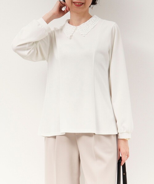 ◇26SS◇MICO COULIERレース襟できちんと華やぐ。日常にも特別な日にも寄り添うブラウス◆Point・上品なレース襟デザインのブラウス・レース襟は取り外し可能でシンプルブラウスにもなります・なめらかで落ち感のあるカットジョーゼット素材を使用・きれい見えしながら伸縮性があり快適な着心地・長袖でロングシーズン活躍・ウエストを絞ったパネルラインでメリハリのあるシルエット・インしなくても決まるデザイン・後ろ姿まで上品なパールボタン付き・シワになりにくくお手入れ簡単・デイリーにはもちろん、セレモニーやオケージョンシーンにも対応・旬なムードを取り入れながら、オンオフ問わず活躍するきれいめブラウス----------------------------------------------------------透け感:オフホワイト:あり、グレイッシュベージュ:若干あり、ネイビー:なし裏地:なし伸縮性:あり光沢感:なし洗濯:手洗い可----------------------------------------------------------気になる商品は、お気に入り登録(ハートマークをタップ!)がオススメですクーポン情報や入荷情報など、お得な通知が受け取れるようになります----------------------------------------------------------●お取扱い上のご注意●末永くご愛用頂くために、アテンションタグを必ずご確認の上、着用又はお取り扱い下さい。※店頭及び屋外での撮影画像は、光の当たり具合で色味が違って見える場合があります。商品の色味は、スタジオ撮影の画像をご参照下さい。※商品画像に関しては出来る限り忠実に表示出来るよう努めておりますが、お客様がご利用のモニターの設定及び特性により、実際の商品と比較し色味に若干の誤差が生じる場合があります。※製品洗い加工の商品は、多少の歪み、シワなどが見られたり、風合いやサイズ等が1枚1枚異なります。汗や雨等で濡れた時や、摩擦により色落ちし、他の衣料を汚すことがありますので(特に濃色のもの)ご注意ください。<MICO COULIER>今の気分をノーリーズらしく取り入れたデイリーアイテムを提案します。ウエアからグッズまで幅広いラインアップ。やわらかく透明感のある着こなしで新しい自分を発見。MICO COULIERの商品につきましてはアウトレット店舗にて展開をしております。