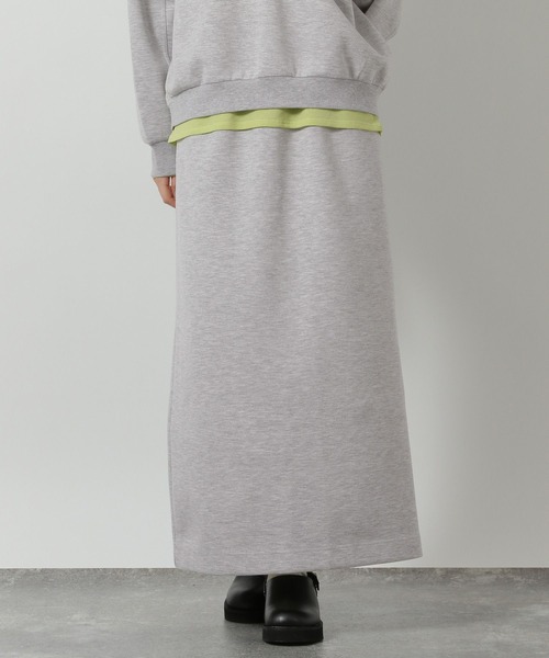 細身のシルエットが上品な雰囲気のナロースカート。タイト見えでも足先に向かってゆとりのあるシルエットで窮屈さ少なく着用いただける1枚です。ウエストにはゴムを使用し着脱が楽なのもポイント。【素材】レーヨン混の滑らかで軽量なダンボール素材を使用。滑らかな質感で肌触りが良くシワになりにくく日常使いにぴったり。内側もさらっとした肌当たりなので着やすさもあるアイテムです。【スタイリング】トップスのデザインを選ばずスタイリングできるアイテムです。カジュアルにもフェミニンにも合わせやすく、シャツとの相性も〇同素材とのセットアップスタイルもおすすめです。