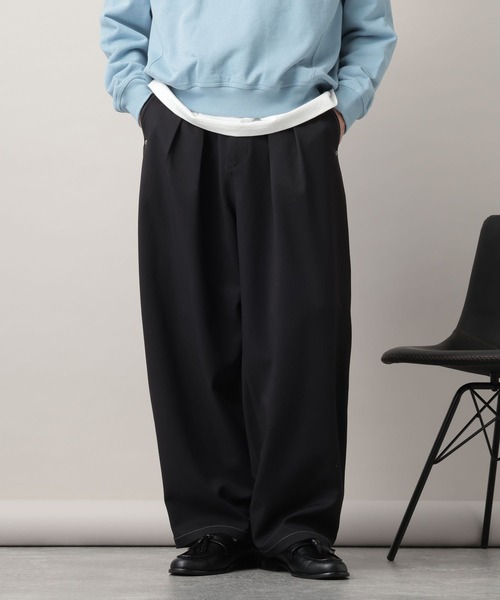 カジュアルなワークパンツを、クリーンに落とし込んだRAGEBLUEならではの一本ーーー■ポイントペインターパンツ由来のデティールはそのまま、素材や無駄な装飾を省き、上品な雰囲気に仕立てたワークパンツ。腿周りから裾に向かって、カーブするようなアウトラインにすることで、現代的なリラックスシルエットに。2タックデザインを施すことで、きれいな丸みのあるカーブラインを叶えています。ウエストには紐を通し、ベルトレスで着用頂けるイージーデザインを採用。ベルトループも配しているので、タックインスタイルや、腰回りのアクセサリーもお楽しみ頂けます。同生地のジャケットもご用意しているので、セットアップで合わせて頂くのもおすすめです。■素材ハリ感のある上品な素材を使用し、程よい光沢感が清潔感を醸し出します。ポリエステル100%なので、耐久性が高く、洗濯機洗いも可能に。シワにもなりにくく、速乾性も兼ね備えた万能の一着。======■参考サイズS:~165cmM:~175cmL:175cm~======ーーー