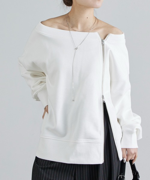 《 Lui's FEMME(ルイス ファム)オリジナル26SSコレクション 》前ファスナーオフショルダースウェット●デザイン斜めにサイドジップがデザインされたオーバーサイズスウェット。ジップは首元と裾からダブルジップになっており、開け方次第で印象を変えられる。ちょっとした肌見せやレイヤードしても楽しめるアイテム。●素材裏毛で寒い今時期のタイミングから長く愛用できる素材感。扱いやすく、デイリーアイテムとして重宝する一着。●スタイリングインナーにレースシャツやシアートップスを入れたキレイめモードなスタイルはもちろん、バルーンスカートや、マキシ丈のスカートで合わせるきれいめカジュアルスタイルも◎ジップを開けて、肌見せしたコーデにするのもおすすめ。**********************透け感:なし裏地:なし伸縮性:なし光沢感:なし生地の厚さ:普通**********************【ブランド】Lui's FEMME(ルイス ファム)凛とした芯のある女性。 自立した、女性のワードローブをイメージ。洗練されたかっこよさの中に、女性らしさ・かわいさ・セクシーさを持つ。自分自身のスタイル(自分らしさ・個性・生き方・感覚...)を表現できるひとつの手段としての服。肩肘張らない、心地よいリラックス感のあるスタイルを上質な素材、優雅なシルエットで提案。 《商品画像について》ご覧頂いている商品の写真につきましては、できるだけ実物の色に近くなるように努めておりますが、お使いの環境(モニター、ブラウザ等)の違いにより、色の見え方が実物と若干異なる場合がございます。 予めご了承ください。《予約商品について》・こちらの商品はサンプルでの撮影・計測となっております。実際の商品とは、商品の一部仕様が変更になる場合がございます。・撮影サンプル品はブランドタグがついておりません。製品にはタグがつきますので、製品の表に縫い糸が見えたり、着用時にタグが透ける場合がございます。・サンプルの為、混率の詳細が確定しておりません。確定次第、記載いたします。・工場の生産の都合上、納期が変更になる場合がございます。発送日の前後についてはあらかじめご了承ください。・入荷状況により、お客様への発送が店頭販売より遅れる場合もございます。・店頭に陳列していた商品も含まれる場合がございます。《ハートをタップして商品のお気に入り登録》登録カラーの商品の「残りわずか」「再入荷」「値下げ」通知を受け取ることができます。各ショップアプリにてブランドフォロー 新商品などの入荷情報、最新のニュースやお得な情報を受け取ることができます。