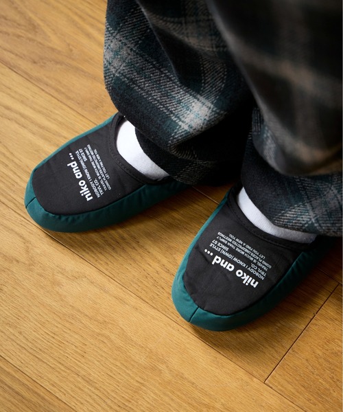 移動中も足元ゆったり。 旅先で活躍するポータブルスリッパ 機内や移動先、宿泊先でさっと履けるポータブルスリッパ。 コンパクトに持ち運べて、旅のお供にひとつ持っておきたいトラベルアイテムです。 <おすすめポイント> 持ち運びしやすいポータブル仕様 折りたたんで付属の巾着袋に収納すれば、バッグの中でもかさばらず持ち運びラクラク。 旅行や出張はもちろん、学校行事や室内履きにも活躍します。 足をやさしく包む履き心地 ポリエステル素材のやわらかな履き心地で、長時間の移動でもリラックス。 機内やホテルでの履き替え用としてもおすすめです。 滑りにくい底材で安心 底材には合成皮革を使用し、室内での歩行も安心。 軽量ながら、使いやすさにもこだわりました。 niko and …らしいロゴデザイン シンプルなカラーリングにニコロゴをあしらったデザイン。 2サイズ展開で、ユニセックスでお使いいただけます。 ウォッシャブル仕様でお手入れも簡単 ご家庭でお洗濯可能◎より長くご愛用頂けます。 <お取扱い上の注意> この製品は、直射日光等により退色する事がありますので、お取扱いにはご注意下さい。 摩擦(特に湿った状態)により色が移る場合があります。他のものとの組み合わせにご注意ください。 洗濯後は濡れたまま放置せず、形を整えて干してください。 他のものと分けて洗ってください。水で濡れていたり、滑りやすい場所でのご使用はお避け下さい。 ※こちらの商品は、衛生上の観点から返品・交換を承ることができません。 ※屋外の光や照明の当たり具合で、実物と色味が異なって見える場合がございます。詳細画像の色味をご確認ください。 なお、商品の色や質感を出来るだけ忠実に再現するよう心掛けておりますが、パソコンなどの環境により、実物と若干異なる場合がございます。 ※写真を許可無くコピー・転用することは固くお断りします。