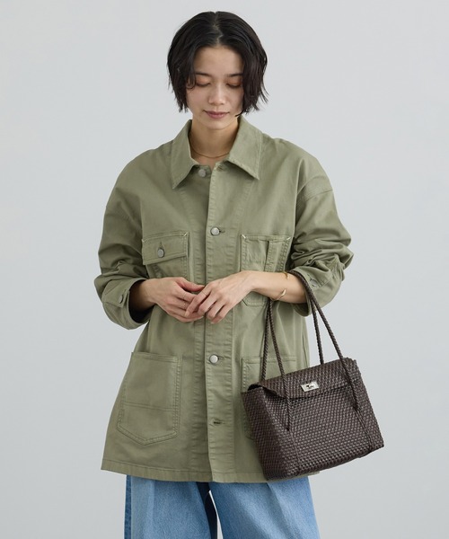 〈26SS〉ヴィンテージディテールが映えるブロークンツイルカバーオール。程よいオーバーサイズで、羽織るだけで抜け感のある大人カジュアルが叶う一着■デザイン/シルエット 1930年代のヴィンテージカバーオールをデザインソースにした、 ブロークンツイル素材のカバーオール。 袖口やポケットの開きなど本格的なワークディテールに、 配色ステッチを効かせた上段ポケットや袖あきがさりげないアクセントに。 程よいオーバーサイズで、抜け感のある大人のカジュアルスタイルを演出します。 レーススカートや光沢感のあるフェミニンアイテムと合わせたMIXスタイリングもおすすめで、 羽織るだけでこなれた印象に仕上がる一着です。 ■素材 6.3ozのブロークンツイル生地を使用。 一般的なツイルよりも強度が高く、ねじれや歪みが起きにくいため、デイリー使いにも安心の素材です。 ごわつきのない滑らかな肌触りとストレッチ性で、快適な着心地を実現。 オーバーダイ加工によるヴィンテージライクな風合いも魅力で、 ライトグレージュとカーキの2色展開です。 ■コーディネート レーススカートやフレアスカートと合わせたフェミニンMIXから、 デニムやワイドパンツを合わせた大人カジュアルまで幅広く対応。 袖まくりや衿抜きでニュアンスをつけることで、季節の変わり目の軽アウターとしても活躍します。 ■モデル身長:166cm 着用サイズF ----------------------------- 裏地:なし 光沢感:なし 透け感:なし ポケット:あり 伸縮性:なし 生地の厚さ:ふつう ----------------------------- ※画像の商品は光の照射や角度、お使いのモニター環境(パソコン・スマートフォン)により、色味が違って見える場合があります。 ※商品の色味は、商品アップ画像をご参照ください。