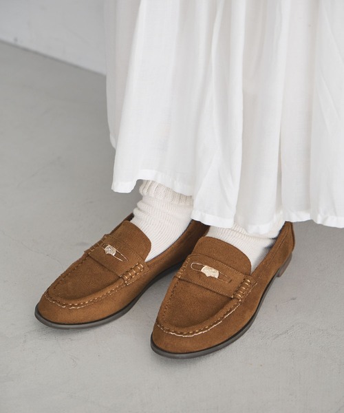 『CLIP BY STAFF』saito企画!驚きのフカフカ感!足に優しく疲れにくい、コインローファーーーー【素材】カラーによって異なる素材を使用しており、ブラックはきれいめな質感の合成皮革、キャメルは温かみのあるフェイクスウェードを使用しています。【デザイン】ゴールドのコインが足元を上品に引き締めてくれる、ベーシックで使いやすいローファー。インソールがフカフカでクッション性が高く、長時間履いても疲れにくいのが嬉しいポイント!踵には靴擦れ防止加工を施すことで、使い始めから足馴染みの良い優しい設計にこだわりました。WEB限定で小足さんに嬉しいSサイズも展開しています。ーーー【スタイリング】普段スウェットやTシャツなどカジュアルスタイルが多い方でも、取り入れるだけで簡単にお洒落なお出かけコーデが完成!スニーカー感覚で軽やかに歩けるため、移動の多い日のお出かけにも重宝します。お仕事やオケージョンシーンなどのきちんとした場面でも活躍します。saito大人可愛いカジュアルスタイルを得意とする低身長さん向けのコーデを発信しているstudio CLIPのWEBスタッフです♪instagram @saito_clip