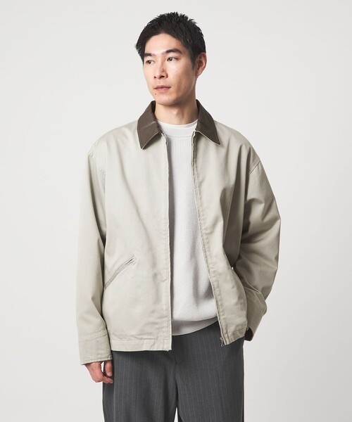 トレンド感のあるショート丈ブルゾン・レザー調生地を使用した襟切り替えデザイン・独特な光沢とハリコシのある「ウエポン」生地を採用・カジュアルながらもクリーンな表情の大人ブルゾン■デザイン肩幅と身幅を広くとったボックス調シルエットの短丈ブルゾンです。フロントや腰ポケットはムシ隠しファスナー仕様ですっきりとした印象に。レザー調の生地で切り替えた襟デザインが、アクセントになっています。■素材コットン100%を使用したウエストポイント生地を採用。綾織で双糸使いなので、ほどよい光沢としなやかさのある生地に仕上がりました。■コーディネートゆったりとしたシルエットのボトムスと合わせると、バランスが良くおすすめです。インナーはシャツやニット、スウェットなど、さまざまなアイテムと相性が◎。スタイルやシューズの雰囲気に合わせてチョイスすると、まとまりのよいスタイリングが完成します。============================裏地:なし透け感:なし伸縮:なし光沢感:ややあり============================【注意事項】※商品に「取り扱い上の注意書き」、「洗濯表示」がございます場合は、使用前に必ずご確認ください。※商品画像は、光の当たり具合やパソコンなどの閲覧環境により、実際の色味と異なって見える場合がございます。あらかじめご了承ください。※商品の色味の目安は、商品単体の画像をご参照ください。店舗へお問い合わせの際は、全国のgreen label relaxing各店舗まで下記の品名/品番をお申し付けください。品名:CSM WPN ZIP UP BL 品番:32251000012
