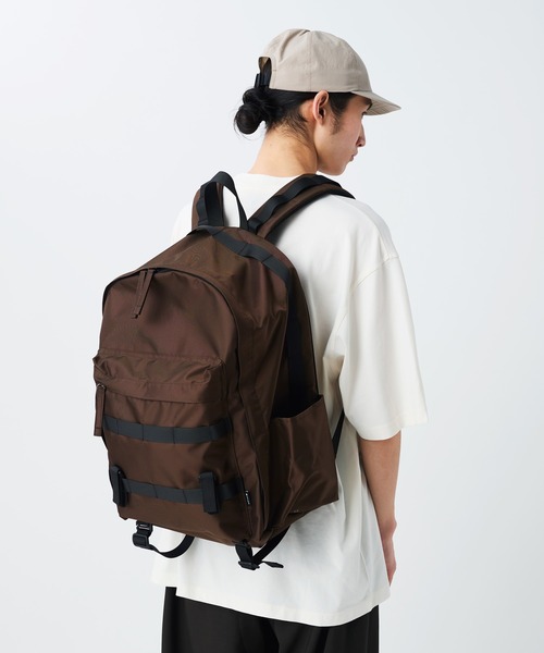 自立性と拡張性を備えたコンパクトバックパック リサイクル素材を使用したバックパック。日常使いからアウトドアシーンまで扱いやすいサイズ感に仕上げています。 しっかりとした生地と底面の二重構造により、荷物が少ない状態でも自立しやすい仕様。フロントは全面が開くファスナー構造で、荷物の出し入れや整理がしやすくなっています。 内側には大型ポケットを備え、衣類やギアなどをまとめて収納可能。両サイドには、ボトルや傘などを余裕をもって収納できる大きなポケットを2つ配置しています。 底面にはバックル付きのバンドを装備し、寝袋やマットなどを外付けできる設計。外側にはモールシステムを採用し、用途に応じた拡張が可能です。 コンパクトながら、収納性と拡張性を備えた実用的なバックパックです。 サイズ:W330×D190×H450mm 容量:約39L 重量:約720g ================== 透け感:なし 裏地:なし 伸縮性:なし 光沢感:ややあり 生地の厚さ:普通 ================== 【Snow Peak / スノーピーク】 1958年に新潟県三条市で創業したアウトドアブランド。 自然と人、人と人をつなぐという理念のもと、アウトドア用品からアパレルまで幅広く展開。 機能性と美しさを兼ね備えたプロダクトを通して、アウトドアと日常をシームレスにつなぎ、自然と調和する新しいライフスタイルを提案しています。 【お気に入り登録のご案内】 気になるアイテムは「お気に入り」に登録しておくと、再入荷やセール情報をいち早くチェックできます。 また、ご覧いただいているお客様限定で、”あなただけのタイムセール”が表示される場合もございます。 ショップのお気に入り登録では、新作やおすすめのアウトドアウェアもご確認いただけます。ぜひご利用ください。