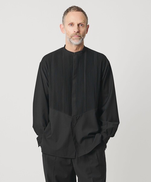 無機質にも見える現代的な素材に手仕事の息づかいを重ね、相反する質感が交わることで新たなモノづくりに挑戦したシリーズ「Bourke(バーク)」 ■デザイン 胸ヨーク部分に、職人の手で一本一本ピンタックを施した長袖のシャツ。 ゆとりのある身頃と、首元を美しく見せるノーカラーデザインが魅力です。 着こなしの幅を広げてくれる前開き可能な仕様のため、羽織としてもお楽しみいただけます。 ■素材 梳毛のウールに、扱いやすさと美しさを両立するため、リサイクルポリエステルを混紡。 さらにポリウレタンを織り込むことで、適度な伸びの着心地の良さとシワになりにくい仕上がりに。 実用性を備えながらも、滑らかで上品な微光沢が特徴です。 ■コーディネート ワントーンでまとめたリラックススタイルや、同シリーズのパンツ(対象品番:89516000007)との組み合わせもおすすめです。 羽織としてフロントを開けてラフにお召しいただいても品よくまとまる一枚です。 ============================ 裏地:なし 透け感:なし 伸縮:ややあり 光沢感:なし ケア方法:手洗い可 ============================ <Pheeta(フィータ)> 2019年デビューの「繋ぐ服」をコンセプトにした東京ブランド。 世界中の継承すべき希少な技術や、家族に引き継がれるような特別な服を、価値観を共有する仲間と共に繋いでいく事を願っています。 手のかかる、まるで生き物のようなも物作りは伝承される中で文化を育み愛情を生んでいきます。 大切な一着を人から人へ繋いでいけるために。 【注意事項】 ※商品に「取り扱い上の注意書き」、「洗濯表示」がございます場合は、使用前に必ずご確認ください。 ※商品画像は、光の当たり具合やパソコンなどの閲覧環境により、実際の色味と異なって見える場合がございます。あらかじめご了承ください。 ※商品の色味の目安は、商品単体の画像をご参照ください。 店舗へお問い合わせの際は、全国のUNITED ARROWS各店舗まで下記の品名/品番をお申し付けください。 品名:PH015CMen-SH0(Bourke) 品番:89516000006