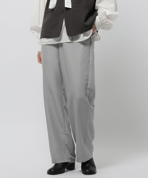 毎日を格上げするストレートパンツ■素材特性サラリとした肌触りのポリエステル100%素材を使用しています。季節を問わない軽やかな質感はオールシーズンご着用いただけます。■デザインすっきりとした腰回りと、ストンと落ちるストレートラインが美しいタックパンツ。落ち着いたトーンのカラーバリエーションは、どんなトップスとも相性抜群です!型崩れしにくく履き心地も抜群な美脚シルエットは、クローゼットに1着あるだけで頼れること間違いなし◎■おすすめスタイリングブラウスや同素材のジャケットを合わせればセレモニーにふさわしい気品ある装いに。カジュアルなアイテムを合わせても大人っぽくまとまるため、休日のお出かけシーンにもおすすめです!・ウエストゴム:あり・ポケット:あり・裏地:なし・裾絞り:なし※サンプルにて撮影をしておりますので、実際の商品とは仕様や加工・サイズ等が若干異なる場合がございます。※屋外の光や照明の当たり具合で、実物と色味が異なって見える場合がございます。詳細画像の色味をご確認ください。 なお、商品の色や質感を出来るだけ忠実に再現するよう心掛けておりますが、パソコンなどの環境により、実物と若干異なる場合がございます。※写真を許可無くコピー・転用することは固くお断りします。※ご注文いただいた予約商品のお届け時期の確認は、注文履歴ページより行えます。