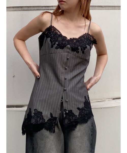 上品な光沢のベロアキャミソール柔らかな肌触りで着心地も◎■アイテムレースキャミは今季外せない旬な1枚。ボタンデザインなので、裾の部分を開けるなどのアレンジも可能。抜け感のあるスタイリングが完成します。ストライプとサテンのアソートの為マニッシュな雰囲気にも女性らしい雰囲気にもなる、スタイリングの幅が広い1枚です。トップスの上にレイヤードするのはもちろん、1枚で上からジャケットやアウターをあわせると女性らしさUP。--------------------------------------------生地の厚さ:普通 伸縮性:なし透け感:一部有り サイズ感:ややタイト--------------------------------------------【知って得する便利機能◎ 】■商品のお気に入り登録再入荷時、ラスト1点の時にお知らせします。■ブランドのお気に入り登録新商品やお得な情報など、いち早くお得な情報をゲット!ぜひご活用ください!※着用画像はフラッシュの加減で実際の製品と色味等が異なる場合がございますので、生地のズームアップ画像をご確認ください。※ご利用の端末画面の設定により実際の商品と色味が異なる場合がございます。