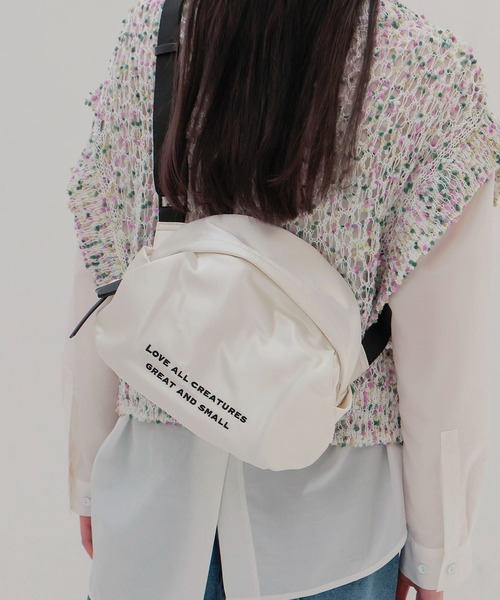 ■DESIGNころんとしたミドルサイズが新鮮なスポーティーな印象のショルダーバッグ。斜めがけで持つことで、よりモードなスタイリングが完成します。今季のコンセプトメッセージを効かせたデザインがさりげないポイント。シックなオールブラックと、カジュアルさが引き立つバイカラーの2色展開です。ロゴにあしらわれた“Love all creatures, Great and small” は、「すべての生きとし生けるものを愛しましょう。大きなものから小さなものまで。」というメッセージが込められています。【TSURU by Mariko Oikawa】どこにもない美しい靴をという思いから生まれた日本発のブランド、TSURU by Mariko Oikawa。シューズをメインにバッグ,ヘアアクセサリーなどその世界感を様々なTsuruとして展開しています。