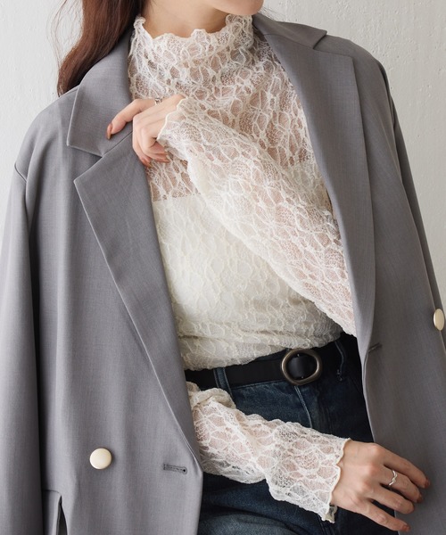 【いつものコーデにワンポイントプラス◎】インナーで大活躍のストレッチレースプルオーバーです。レースの凹凸感がかわいく、伸縮性がある生地なのでストレスフリーな着心地です。程よい透け感で大人っぽいレースなので、カジュアルからキレイめまで合わせやすいのも嬉しいポイントです。丈感はしっかりめに作られているのでボトムスにインしやすい設計に。いつものコーデに何か足したいときにオススメなアイテムで首元はもちろん、袖だけちらっと見せるのもかわいいです。【商品ポイント】・レイヤードコーデに最適・伸縮性のある生地でストレスフリー・大人っぽいレースデザインなので合わせやすい----------------------------------------------------■商品特徴洗 濯 方 法 :手洗い可裏 地 :なし透 け 感 :あり伸 縮 性 :あり光 沢 感 :なし生地の厚さ:薄め----------------------------------------------------■素材ナイロン90%, ポリウレタン10%----------------------------------------------------※着用、お取り扱いの際は、商品についている品質表示とアテンションタグを必ずご確認下さい。※商品タグに記載されている商品名がWEBでの表記名と異なる場合があります。※実際の商品と仕様、加工、サイズが若干異なる場合がございます。※照明の関係により、実際よりもやや明るく見える場合がございます。またパソコンなどの環境により、若干製品と画像のカラーが異なる場合もございます。予めご了承くださいませ。【お気に入り登録】してお得な情報をCHECK!!・「商品のお気に入り登録」で再入荷通知や、ラストの通知、セール通知も受け取ることができます。・「ブランドのお気に入り登録」で新商品や再入荷など、お得な情報を受け取ることができます。