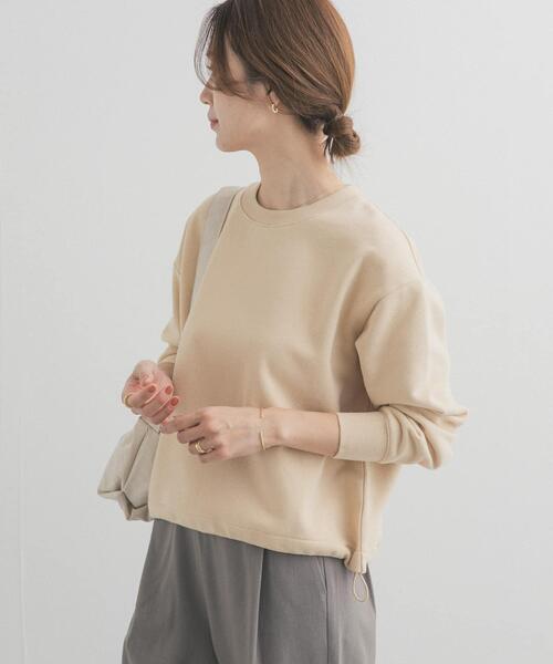 気分で変えられる、シルエット自在ドロストスウェットスウェット素材ならではの柔らかさと、裏面に起毛なしの加工を施したさらりとした肌触りが魅力のプルオーバー。リラックス感がありながらも、きれいめな印象で着用いただける一着です。裾に施したドローストリングでシルエットの調整が可能で、広がりのあるAラインシルエットから、ギャザーを寄せたコクーンシルエットまで楽しめます。スタイリングや気分に合わせて表情を変えられるため、コーディネートの幅が広がるのもポイント。着心地を重視したこだわりの生地を使用し、軽やかで快適な着用感を実現しました。デイリーからきれいめスタイルまで活躍する、汎用性の高いトップスです。【2026 Spring/Summer】【26SS】※商品画像は、光の当たり具合やパソコンなどの閲覧環境により、実際の色味と異なって見える場合がございます。予めご了承ください。※商品の色味の目安は、商品単体の画像をご参照ください。▼お気に入り登録のおすすめ▼お気に入り登録された商品は、マイページにて現在の価格情報や在庫状況の確認が可能です。お買い物リストの管理にぜひご利用ください。素材感透け感 : なし伸縮性 : ややあり裏地 : なし光沢 : なしポケット : なしFREE