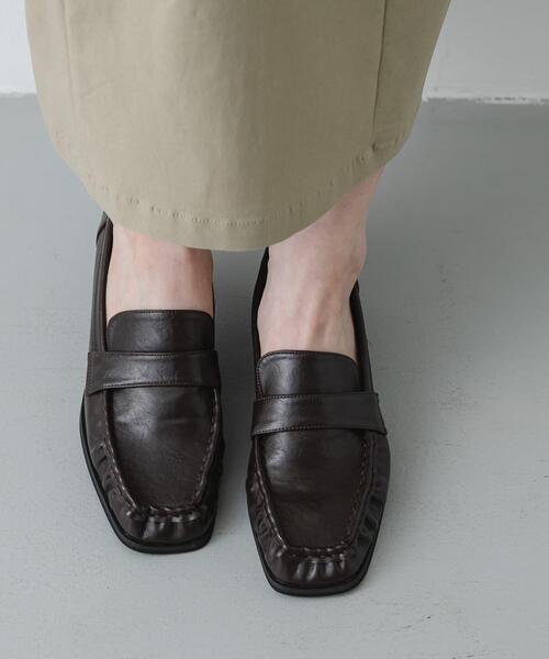 【足元に立体感を。品よくスタイルアップを叶えるデザインローファー】・程よい光沢とシボ感のあるフェイクレザーを採用し、本革のような奥行きのある表情を演出・つま先にギャザーがしっかり入った立体感のあるアッパーデザインが、装いに華やかなアクセントをプラス・安定感のあるヒールがありつつも履き心地の良いソールを追求し、長時間の歩行も快適にサポートクラシカルなローファーを、ギャザー使いでモダンに昇華させた一足です。上品な光沢と繊細なシボ感が美しいフェイクレザーを使用しており、履くだけで足元を端正に整えてくれます。最大の特徴は、たっぷりと寄せられた立体的なギャザーデザイン。シンプルなスタイリングに投入するだけで、足元から豊かな表情を生み出します。さらに、程よい高さの安定したヒールとクッション性の高いソールを組み合わせることで、スタイルアップを叶えながら快適な履き心地を実現しました。オンオフ問わず、毎日の装いに品よく寄り添う実力派シューズです。【2026 Spring/Summer】【26SS】※靴箱破損につきましては、商品に不良が無い場合に限り出荷させていただいております。予めご了承ください。※サイズ詳細は、当社が独自で計測したサイズです。重量(片足) : 約245g※商品画像は、光の当たり具合やパソコンなどの閲覧環境により、実際の色味と異なって見える場合がございます。予めご了承ください。※商品の色味の目安は、商品単体の画像をご参照ください。▼お気に入り登録のおすすめ▼お気に入り登録された商品は、マイページにて現在の価格情報や在庫状況の確認が可能です。お買い物リストの管理にぜひご利用ください。MSL