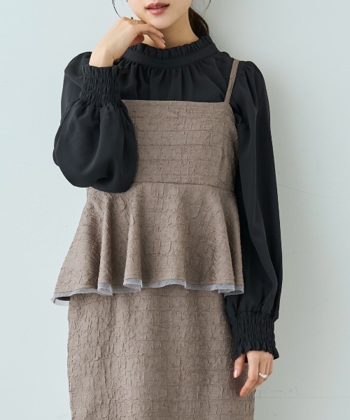 シックな佇まいとフェミニンなディテールが織りなすレディなブラウス。 顔まわりを華やかに見せるフリルハイネックは、ふんわりとしたパフスリーブが上品な印象を演出します。 落ち感が優雅に揺れる、柔らかな素材を使用。 きちんと見せたいオフィスシーンから、オケージョンやセレモニーまで幅広く活躍する万能ブラウス。 シーンレスに着用できるから、普段着使いにもフィット。 デニムなどのカジュアルアイテムとも好相性◎程よい抜け感と、コーデにメリハリをプラス。 袖口はシャーリングゴムで仕上げ、腕まくりが必要なシーンにも対応。 ギャザーは高見えポイントに。しっかりと着映えする大人かわいいブラウスです。 ・後ろスリット明き(ボタン付き) ・袖口ゴム仕様 ◆Fabric◆ ・上品なとろみがある素材。 ◆Styling◆ ・スラックスにインして、きれいめ王道のオフィススタイルに。 ・キャミソールワンピースのインナーとして、襟元と袖のフリルをアクセントにしたフェミニンな装いに。 ・ブラックデニムに合わせて、甘さを引き締めた大人カジュアルに。 ~~~~~~~~~~~~~~~ 裏地 なし 生地の厚み 薄手 生地の透け感 淡色ややあり 生地の伸縮性 なし 生地の光沢感 なし ~~~~~~~~~~~~~~~ ※染色・加工条件により色ごとの風合いに多少の差異が生じる場合がございます。品質に問題はございませんので予めご了承ください。 ※素材によってはやむを得ず染料や防カビ剤等、脱色による塩素の匂いが強いものがございます。 また、素材にアクリルを使用している場合は石油が原料の化学繊維のため、匂いに敏感な方はその匂いを感じてしまう事もございます。 臭いが気になる場合は水洗い・または陰干しされてからご着用いただくようお願いいたします。 ※大量生産のため糸始末が十分なされない場合がございます。気になる場合は出ている糸をはさみ等でお切りください。 ※画像の商品はサンプルのため、実際の商品とは色味・仕様・加工・サイズ等が若干異なる場合がございます。 ※商品によっては、2cm前後(ニットの場合は3cm前後)のサイズ誤差が生じる場合がございます。 ※撮影時の照明やお使いのパソコン・スマートフォンの設定等により画像の色が実物と異なって見える場合がございます 【mil/ミル】 低身長でもオシャレを楽しみたい そんな気持ちから生まれた 小柄さん向けレディースブランド。 ぴったり丈の感動をお届けします。 around150cm Produce by @chiii.yyy 【ブランド公式SNS】 Instagram: @mil_by.chiii 《お気に入り登録》でお得な情報がいっぱい ・「商品のお気に入り登録」で再入荷通知や、ラスト1点の通知、セール通知も受け取ることができます。 ・「ブランドのお気に入り登録」で新商品や再入荷など、お得な情報を受け取ることができます! ※ご注文いただいた予約商品のお届け時期の確認は、注文履歴ページより行えます。 ※他のキャンペーンにより、期間中に価格が変動する場合があります。 ※セールは予告なく終了させていただく場合もあります。