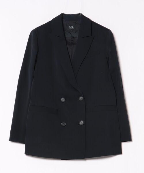 *ストレートカット. *ダブル仕立て. *胸ポケット1つ、サイドポケット2つ. *肩パット.
