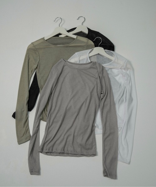 【リブシアーラウンドネックトップス】・柔らかな風合いが魅力のシアートップス・程よい透け感がコーディネートに抜け感をプラス・伸縮性のある軽やかな着心地で、レイヤードスタイルに最適・トップスやカーディガンに重ねるだけでこなれた印象に・すっきりとしたシルエットとベーシックなカラー展開で、色違いで揃えたくなるアイテム透け感:あり 伸縮性:あり lawgy" ラウジーlaugh(笑顔)+ energy(エナジー)毎日笑顔で過ごすエネルギーになりますように。心を込めて…。