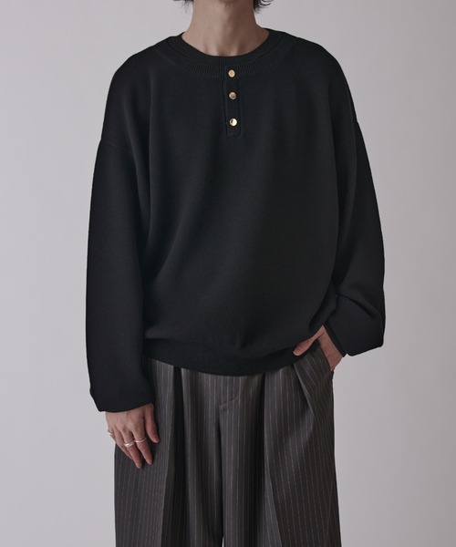 Lui's(ルイス)26SS レイヤードヘンリーニット首元がレイヤードデザインになったヘンリーネックニット。ボタンもゴールドにし、シンプルになりすぎないように仕上げました。やや緩めなシルエットで、リラックスとした着心地となっております。きれいめなデザインなので、スラックスやフレアパンツとの合わせがおすすめです。--------------------------透け感/なし裏地/なし伸縮性/あり光沢感/なし生地の厚さ/やや薄め--------------------------【ブランド】Lui's(ルイス)モテる男のワードローブをテーマにモード&ストリートのMIXコーディネートを提案。着心地、カッティング、素材感を重視した商品を国内外問わず編集し発信していく。■商品のお気に入り登録(ハートマーク)完売カラーの再入荷、ラスト1点の通知、セールの際の通知を受け取れます。■ブランドのお気に入り登録新商品の入荷など、いち早くブランドのお得な情報を受け取れます。 是非ご利用ください。【注意事項】※画像の商品はサンプルです。実際の商品と色味、仕様、加工、サイズ、素材等が若干異なる場合がございます。※工場の生産の都合上、納期が変更になる場合がございます。発送日の前後については予めご了承ください。※入荷状況により、お客様への発送が店頭販売より遅れる場合もございます。※商品を使用前に、タグ等に記載されている「取り扱い上の注意書き」、「洗濯表示」を必ずご確認ください。※商品画像は、光の当たり具合やパソコンなどの閲覧環境により、実際の色味と異なって見える場合がございます。予めご了承ください。※ご注文いただいた予約商品のお届け時期の確認は、注文履歴ページより行えます。