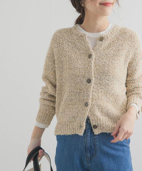 アンティークボタンが映える、メランジニットカーディガンミックスヤーンによるメランジ見えがかわいい、表情豊かなニットカーディガンをご用意。アンティークゴールドのボタンを使用し、ややクラシカルな印象に仕上げました。程よい肉感で寒い時期から着用でき、インナーを変えることでロングシーズン活躍。カジュアルに着られるツイードジャケット風としても着用でき、スタイリングの幅が広がります。きちんと感がありながらも堅すぎず、オンオフ問わず使いやすいアイテム。春らしいオフとイエローの2色展開で、コーディネートに明るさをプラスしてくれる一枚です。【2026 Spring/Summer】【26SS】※この商品は、引っ掛け・引っ掛かりが起きやすくなっています。※素材の特性上、縫い目などに過度な力が加わることで、滑脱する場合があります。クリーニング・ご着用の際は充分ご注意ください。※その他お取り扱いに関しましては、商品に付属のアテンションタグをご覧ください。総重量 : 約645g※商品画像は、光の当たり具合やパソコンなどの閲覧環境により、実際の色味と異なって見える場合がございます。予めご了承ください。※商品の色味の目安は、商品単体の画像をご参照ください。▼お気に入り登録のおすすめ▼お気に入り登録された商品は、マイページにて現在の価格情報や在庫状況の確認が可能です。お買い物リストの管理にぜひご利用ください。素材感透け感 : ややあり伸縮性 : あり裏地 : なし光沢 : なしポケット : なしFree