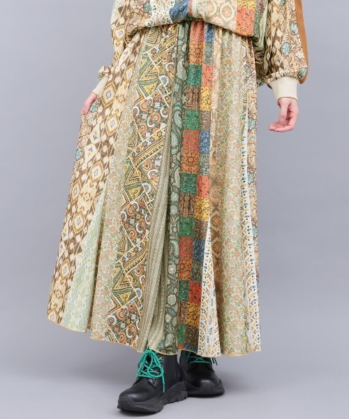 華やかなパッチワーク柄が映える!シルエットがきれいな総柄スカート ■デザイン インドの伝統的なテクニックを用いた、色とりどりのファブリックをパッチワークのように詰め込んだオリジナルプリントの総柄スカート。 柄の中には、ブロックプリントやイカット、ミラーワークなど、多彩な表情のファブリックを楽しめるのも魅力◎ ストンと落ちるシルエットに、裾の斜め切り替えでふんわり揺れるフレア感をプラス! ■サイズ感 レディースM/Lサイズ ウエストはゴム+紐仕様でラクに調整可能。 Mサイズは丈を短めに仕上げているので、低身長さんも安心して穿けます。 ■素材感 さらりとした肌触りのジャージー素材。 落ち感があるので広がらず、歩くたびにきれいな揺れ感が楽しめます。 動きやすいノンストレスな穿き心地が魅力◎ ■スタイリング 無地のカットソーやニットを合わせれば、シンプルなのに華やかな大人カジュアルに。 デニムシャツやジャケットを羽織れば、こなれ感のある着こなしに仕上がります。 同シリーズのトラックジャケットとのセットアップスタイルもおすすめです。 ■カラー ベージュ/ブルー/マルチ ■お手入れ洗濯可 --------------------------------- 透け感:透けない 伸縮性:あり 裏地 :なし 光沢 :なし 生地の厚さ:普通 ポケット:なし --------------------------------- 【TITICACAのお買いものをお楽しみいただくために!】 ▼商品のお気に入り登録 完売カラーの再入荷通知や、ラスト1点の通知、セールの通知も受け取ることができます。 ▼ブランドのお気に入り登録 新商品や再入荷など、いち早くブランドのお得な情報を受けることができます!