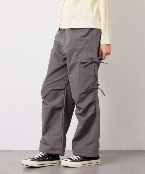 ◆大人気!トレンドのリボンをあしらったカーゴパンツ◆【デザイン】・リボンがポイントのガーリーテイストなカーゴパンツ。 ・膝にタックが入って動きやすいデザイン。 ・春コーデに合わせやすい明るいくすみカラーのカラーバリエーション。 ・ウエストは総ゴム、裾はドロストコードで調節できるので、楽な着心地です。 ・一枚で様になりロングシーズン使えるアイテムなのも嬉しい♪【素材】・伸縮性のあるカットソー素材。【スタイリング】・ボリュームたっぷりなデザインなのでショート丈のトップスやスッキリしたトップスと相性抜群! ・カジュアルトップスも甘めトップスもボトムを主役にバランスよく着こなせる。 ・カジュアルなアイテムだからこそ、女の子らしいアイテムとは相性が良い◎ ・スウェットやロンTに帽子を合わせたスタイリングは今流行りの韓国風ファッションにぴったり。【カラー】・ライトブルー…女の子人気の高いおしゃれなライトブルー ・グレー…普段もお出かけもカジュアルに決まるグレー----------------透け感:なし裏地:なし伸縮性:なし光沢感:なし生地の厚さ:普通----------------≪お気に入り登録機能の使い方≫■商品のお気に入り登録(ハートマークをクリック)再入荷通知や値下げ等、お得なご案内を受けることができます。 ※WEB・一部店舗限定販売です。----------------※サンプルでの撮影となるため、実際にお届けする商品と仕様やサイズが異なる場合がございます。※商品画像は、光の当たり具合やパソコンなどの閲覧環境により実際の色味と異なって見える場合がございます。 商品の色味の目安は商品単体の画像をご参照ください。