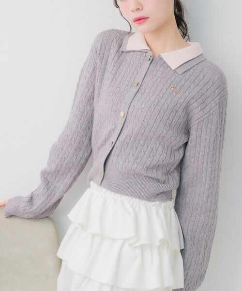 〈スクール感あるケーブル編みの二枚襟ニットカーディガン〉▼デザイン今年トレンドのW襟デザインのニット!ニットはケーブル編みになっていて、スクール感ある可愛いデザイン。フロント部分はゴールドボタンで高級感も◎胸元にはemsオリジナルプレートがついていて、プチプラなのにしっかり高見え♪▼コーディネート定番のプリーツスカート合わせやカジュアルなデニム合わせもおすすめ!ロングスカートで合わせればフェミニンな印象に仕上がります。フロント部分の釦を外すとカーディガンとして着用できるので、いろんな場面で活躍♪------------------------------生地感:普通伸縮性:ある透け感:なし裏地:なし------------------------------▼ブランド紹介ems excite (エムズエキサイト)“more fun more cute”今をもっと楽しくもっと可愛くいたい女の子に向けたgirly cuteなブランド#ニット #ニットアイテム #ケーブルニット #ダブル襟 #プレート #バイカラー #襟ニット #カーディガン▼注意事項※撮影環境やモニター環境によって実際の商品とお色味が 多少異なってみえる場合がございます。品番:EU557112B001 / 品名:2枚襟ケーブルカーデ