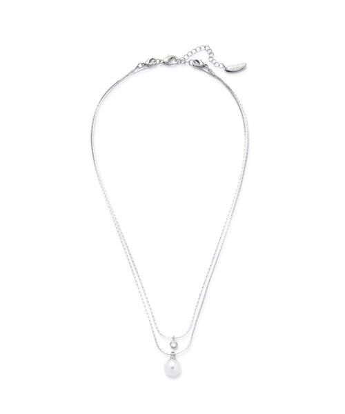 パール調パーツとストーンをあしらった2連チェーンの定番プチネックレス。主張しすぎないシンプルデザインで、オフィスシーンにもおすすめです。2連チェーンは取り外し可能で、それぞれ単品でも使えるアクセサリーです。※モデルの着用画像の場合、光の当たり具合により、実際の色味と異なって見えることがございます。色味は、商品単体の画像をご参照ください。