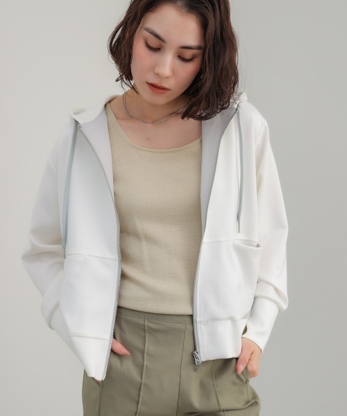 ■POINT 裾にレイヤードデザインを施し、さりげなく奥行きのあるスタイリングが楽しめるパーカーです。バックスタイルにはラインとZipディテールを効かせ、シンプルながら後ろ姿まで抜かりないデザインに仕上げています。程よくゆとりのあるシルエットで、体のラインを拾いにくくリラックス感のある着心地も魅力。パンツにもスカートにも合わせやすく、デイリー使いからワンマイルまで幅広く活躍。トレンドのレイヤード見えが一枚で完成する、今季らしいアイテムです。 ■FABRIC 柔らかく肌なじみの良い素材を使用し、軽やかな着心地が特徴です。動きやすさがあり、長時間の着用でもストレスを感じにくいのがポイント。梅春シーズンにちょうど良い厚みで、季節の変わり目に重宝します。 ■COORDINATE デニムやスニーカーを合わせたカジュアルスタイルなら、デイリーに気負わず着こなせます。テーパードパンツやロングスカートと合わせれば、パーカーでも程よくきれいめな印象に。お出かけやちょっとした外出、リラックスしたい休日など、シーンに合わせて幅広いコーディネートが楽しめます。 ………………… 透け感:なし 裏地:なし ………………… ★商品のお気に入り登録 登録すると、完売しても再入荷時に通知を受け取ることができます。 ほかにもお得な特典があるかもしれません♪ ★ブランドのお気に入り登録 新商品や再入荷などの情報を受け取ることができますので、是非ご登録ください♪
