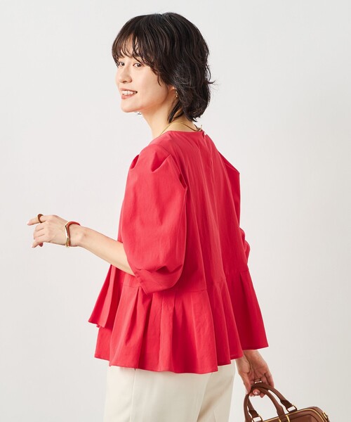◇26SS◇ NOLLEY'S ◆Point ・スポーティな素材で、ギャザーをたっぷりとったペプラムブラウス ・織物とジャージの間の様なトリコット素材を使用 ・伸縮性があり、軽くて着心地がよく、きれい目な素材 ・サラッとしてドライタッチのサラドラ! ・袖丈も肘が隠れる丈でシーズン長く着用可能 ・シンプルなパンツやタイトスカート、デニムとも楽ちんコーディネートを楽しめる一枚 ・接触冷感、吸水速乾性あり ●お取扱い上のご注意● 末永くご愛用頂くために、アテンションタグを必ずご確認の上、着用又はお取り扱い下さい。 気になる商品は、お気に入り登録がオススメです! クーポン情報、入荷情報が、通知されるようになります。 ※手洗い可 ※店頭及び屋外での撮影画像は、光の当たり具合で色味が違って見える場合があります。商品の色味は、スタジオ撮影の画像をご参照下さい。 ※商品画像に関しては出来る限り忠実に表示出来るよう努めておりますが、お客様がご利用のモニターの設定及び特性により、実際の商品と比較し色味に若干の誤差が生じる場合があります。 ※画像の商品はサンプルとなりますので実際の商品と仕様、加工、サイズが若干異なる場合がございます。