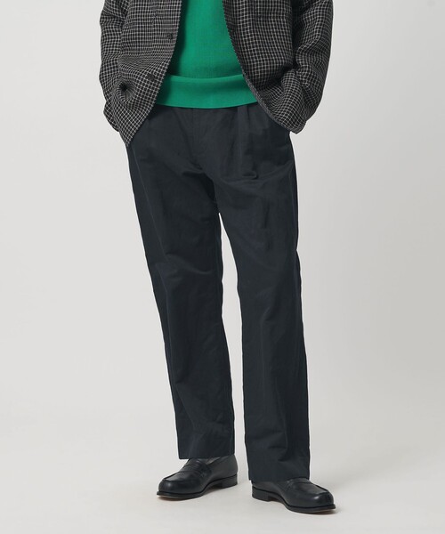 素材にこだわった、<UNITED ARROWS>定番2プリーツパンツ■デザイン<UNITED ARROWS>定番のインタックの2プリーツパンツ。程よくワイドなシルエットですが、ややテーパードさせトレンド感もありながら汎用性の高いパンツになっています。■素材綿織物の産地である静岡県浜松で織られた素材を使用。タテ糸はコットンを高密度に打ち込み、ヨコ糸にラミーを使用し上品な光沢感を出しています。ニドムバイオ加工という特殊な加工を施し生地のハリを程よくなくし、微起毛させ滑らかな質感を加えています。ファッション性と実用性をあわせもち、永く愛用しても飽きのこないこだわりの素材です。■コーディネート優雅なシルエットと存在感のある素材のマッチングで上品なスタイリングに最適です。ドレストラウザースよりも扱いやすく、チノパンのようにカジュアルな仕様にしています。リラックスして気軽に日常に取り入れていただきたいパンツです。プリーツ :2プリーツ(イン)シルエット :テーパードシルエットポケット :前左右/後左右裏地 :なし============================裏地:なし透け感:なし伸縮:なし光沢感:ややあり============================【SLOW & 】オーセンティック・トラッド・ベーシックなモチーフのモノをチョイスし、シルエット・時代性・素材使い・縫製テクニック・上質さをUA 目線で編集し直したカジュアルアイテムの新ライン。 ゆっくりとした時間軸の中で研鑚されたトラディッショナルなアイテム。丁寧に紡いだ素材は気に入って幾度も着用を繰り返す事で風合いが増し、あなただけのお気に入りの一着になり、手持ちの洋服と上手く組み合わせたり大切な人や後世に残してゆっくりとあなただけのヴィンテージになっていく。&の後の余白にはそんな想いを込めています。【注意事項】※商品に「取り扱い上の注意書き」、「洗濯表示」がございます場合は、使用前に必ずご確認ください。※商品画像は、光の当たり具合やパソコンなどの閲覧環境により、実際の色味と異なって見える場合がございます。あらかじめご了承ください。※商品の色味の目安は、商品単体の画像をご参照ください。店舗へお問い合わせの際は、全国のUNITED ARROWS各店舗まで下記の品名/品番をお申し付けください。品名:UAS/& RAMIE NDM CHNO 2P 品番:11141550003