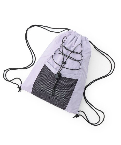 ナイロンのシャカシャカ素材を使用した軽いナップサックです。編み上げとメッシュポケットが大人っぽいポイントになっています。容量約12Lで荷物をしっかりと収納できるのも魅力◎。肩紐は調節可能なので、ランドセルの上からも背負えます! 関連品番:9261401、9261403、9261413