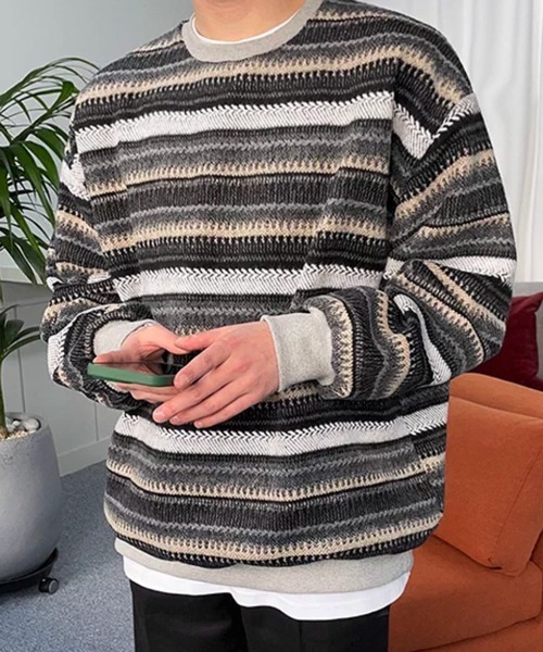 【NOWLE】ウォーム起毛 総柄ボーダー クルーネック スウェット ■ 表情豊かなボーダーが織りなす、洗練されたヴィンテージ感 等間隔ではない、絶妙な配色とピッチで構成されたマルチボーダーが目を惹くスウェットプルオーバーです。 ジャガード織りのような複雑で奥行きのある総柄デザインは、シンプルになりがちな冬のコーディネートに確かな個性をプラスします。 どこかレトロでヴィンテージライクな雰囲気が、大人のストリートスタイルを格上げします。 ■ 温もりに包まれる、やや起毛した極上の素材感 表面に微細な起毛加工を施すことで、見た目にも暖かく、柔らかな肌触りを実現しました。 しっかりとした肉厚のスウェット生地でありながら、起毛感によるソフトな風合いが身体を優しく包み込みます。 保温性にも優れているため、寒い季節のメインアイテムとして、あるいはインナーとしても高いパフォーマンスを発揮します。 ■ リラックス感を極めた、現代的なワイドシルエット 計算されたドロップショルダーと、広めに設定された身幅により、トレンド感のあるビッグシルエットを構築しました。 袖口と裾にはコントラストの効いたリブを配することで、全体の印象を程よく引き締め、ルーズになりすぎない上品な丸みを表現。 一枚で着てもサマになり、レイヤードスタイルもスムーズに決まります。 ■ 着こなしの幅を広げる、秀逸なモノトーン配色 グレー、ブラック、ホワイトといった落ち着きのあるカラーリングでまとめているため、どんなボトムスとも相性抜群です。 ワイドパンツでルーズにまとめるのはもちろん、スラックスと合わせて綺麗めなニュアンスを加えるのもおすすめ。 性別を問わず楽しめるユニセックスなデザインで、幅広いライフスタイルに寄り添います。 【NOWLE(ノウル)】 now+owlの造語で幸福の鳥owl(フクロウ)をモチーフにしたブランド名 "今"と"幸福"を大切にという想いを込めて立ち上げたセレクトブランドです。 【NOWLEの新着情報について】 ▼商品のお気に入り登録 完売カラーの再入荷通知や、ラスト1点の通知、セールの通知も受け取ることができます。 ▼ブランドのお気に入り登録 新商品や再入荷等、いち早く"NOWLE"のお得な情報を受け取ることができます。 ※こちらの商品の画像はサンプルを使用しているため、一部製品と仕様が異なる場合がございます。 ご覧のモニター環境や撮影環境により実際の商品と多少色味が異なって見える場合がございます。 この点をご了承の上、お買い求めください。ご理解の程よろしくお願いいたします。 ポイント ボーダースウェット 起毛スウェット 総柄パーカー マルチボーダー クルーネック ビッグシルエット オーバーサイズ ヴィンテージライク レトロ ストリート カジュアル モノトーン ジャガード風 肉厚 防寒 秋服 冬服 メンズ レディース ユニセックス ジェンダーレス CZ_0002